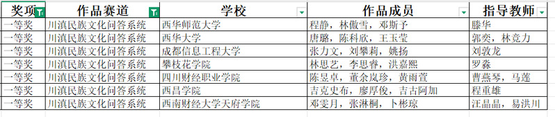 在决赛中,西华大学学子展现了扎实的专业功底和出色的解决问题的能力。由郭奕、林竞力老师指导,唐璐、陈科欣、王玉莹同学完成的作品《川滇民族文化问答系统》荣获大赛一等奖;郭奕、林竞力荣获“优秀指导教师”称号。此外,西华大学还凭借在赛事组织与学生培养方面的突出贡献,被大赛组委会授予“优秀组织单位”奖。
