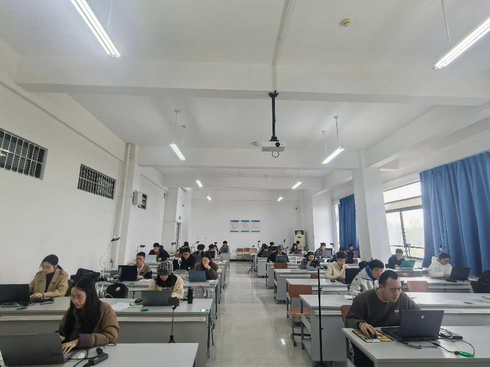 赛事于3月21日13:30-16:30在郫都校区8-325和宜宾校区研发楼405同时进行。两校区一共52人参赛,队员自主选择C/C++、Python、Java任一程序设计语言完成竞赛题目,赛场氛围紧张热烈。经过3小时比拼,表现优异的30名选手成功入选天梯赛集训队伍。